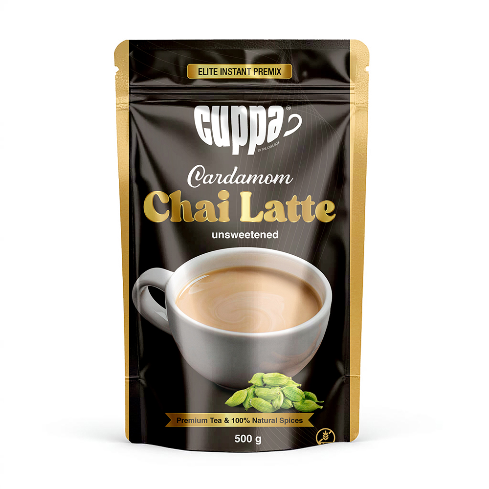 Whey Permeate (Milk), Skimmed Milk Powder, Coconut Oil, Maltodextrin, Anti-caking agent (E551). Stabilisers (E340ii, E452i), Milk Proteins, Emulsifiers (E471), Vitamins (C,A,D3), Sugar, Black Tea Powder (7%), Cardamom.